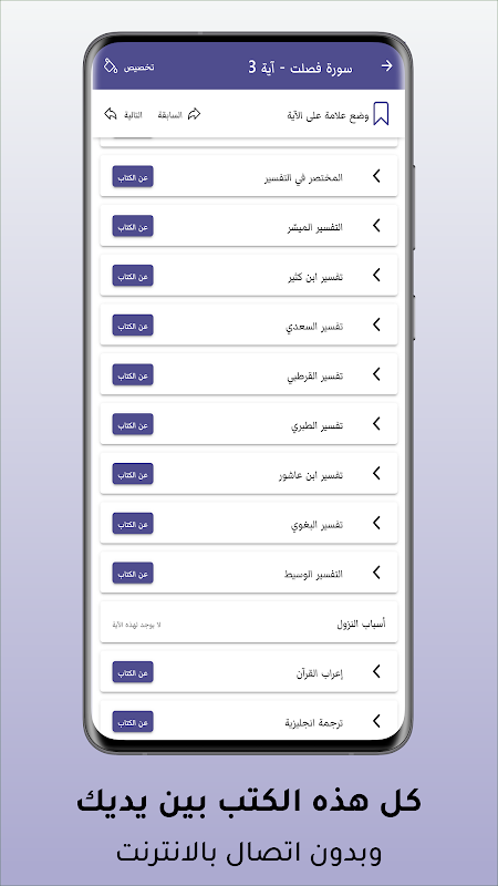 - The possibility of sending the text or interpretation of the verse through the means of communication