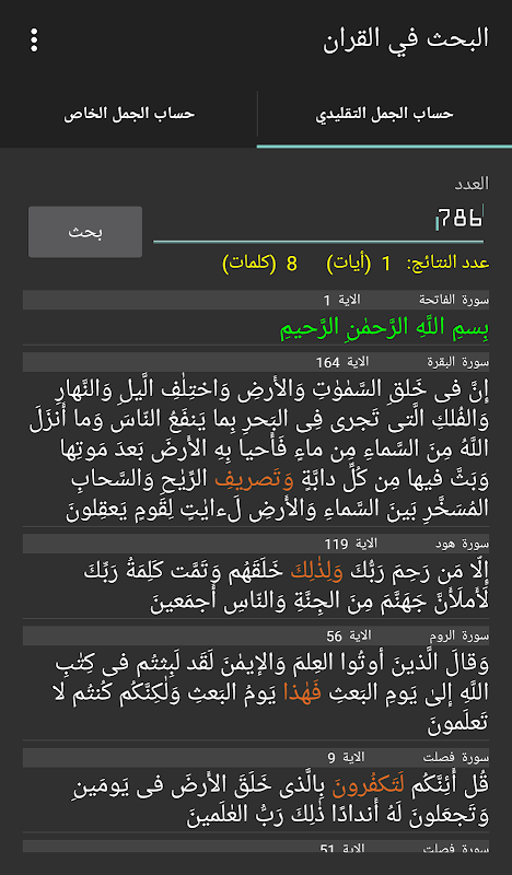 Statistics Koranic verses and words (respectively, numbers and phrases account)