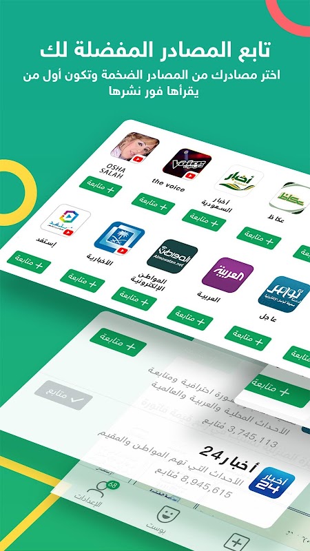 يمكنك اختيار ومتابعة مصادرك المفضلة من المصادر الضخمة وستكون أول من يقرأها فور نشرها!