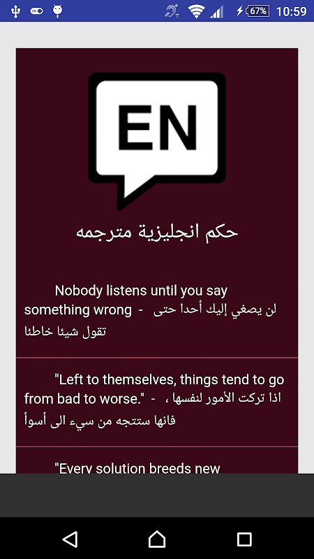 فهذا التطبيق يساعدك علي تحسين أداءك باللغه الانجليزية وقرأتها ومعرفه بعض الكلمات الجديده التي قد تستمع بقرأتها ومشاركتها مع أحبائك والذي به اكثر من موضوع ومنها :