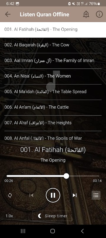 ✔️ Sleep timer. Set the duration you want and the recitation will stop automatically when this duration is elapsed.