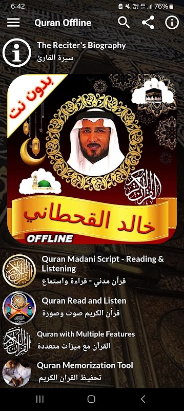 Al Quran Offline Khalid Al Qahtani with reading, listening and more features