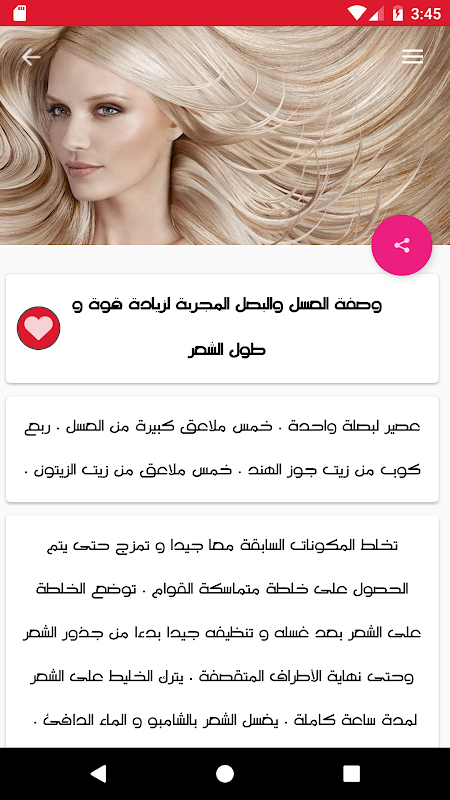 اليكي سيدتي اروع خلطات مجربة لتطويل وتنعيم الشعر بدون نت حيث يحتوي التطبيق على اكثر من 20 وصفة مجربة لتطويل وتنعيم الشعر.