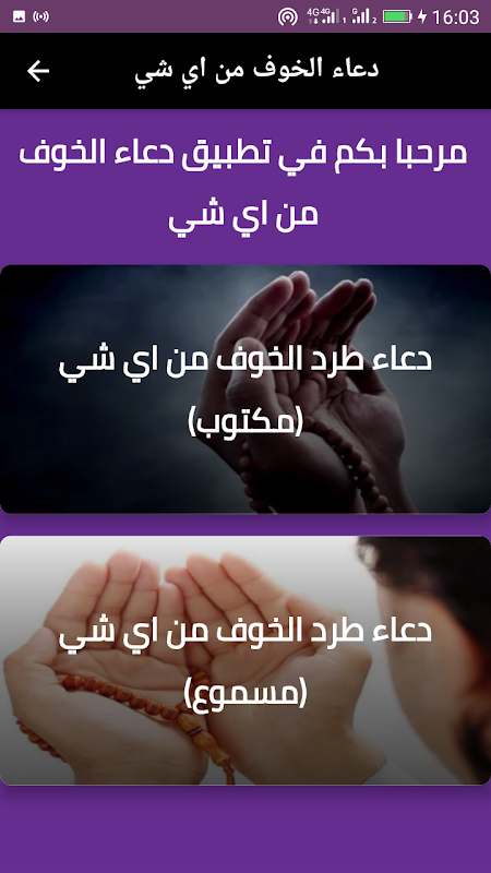 يحتوي هذا التطبيق على مجموعة من الادعية مثل دعاء الخوف والقلق بدون نت. يتعرض الناس كثيرا لاحداث ولحظات سيئة مع ناس اخرين لذلك وضعنا لكم دعاء الخوف من شخص، و كذلك للتغلب على تلك اللحظات السيئة وفرنا لكم دعاء الخوف من شي، ودعاء الخوف من الامتحان او الناس، ولزرع الطمانينة في نفوسكم و للراحة النفسية بامكانكم ان تجدو دعاء الخوف من الموت او السلطان في تطبيقنا.