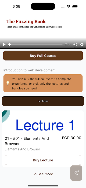 An all-in-one learning platform where users can purchase courses or individual lessons, watch videos, open PDFs, take exams, submit homework, and track their progress, making education flexible and accessible anytime, anywhere.