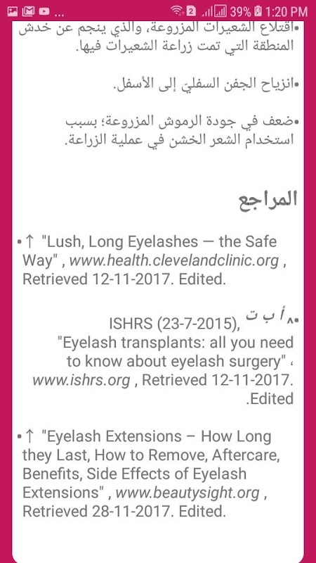 ويقدم التطبيق المراجع الأساسية والمجلات والكتب التي تم أخذ المعلومات منها , ليستطيع المستخدم الرجوع الى المصدر اذا أراد.