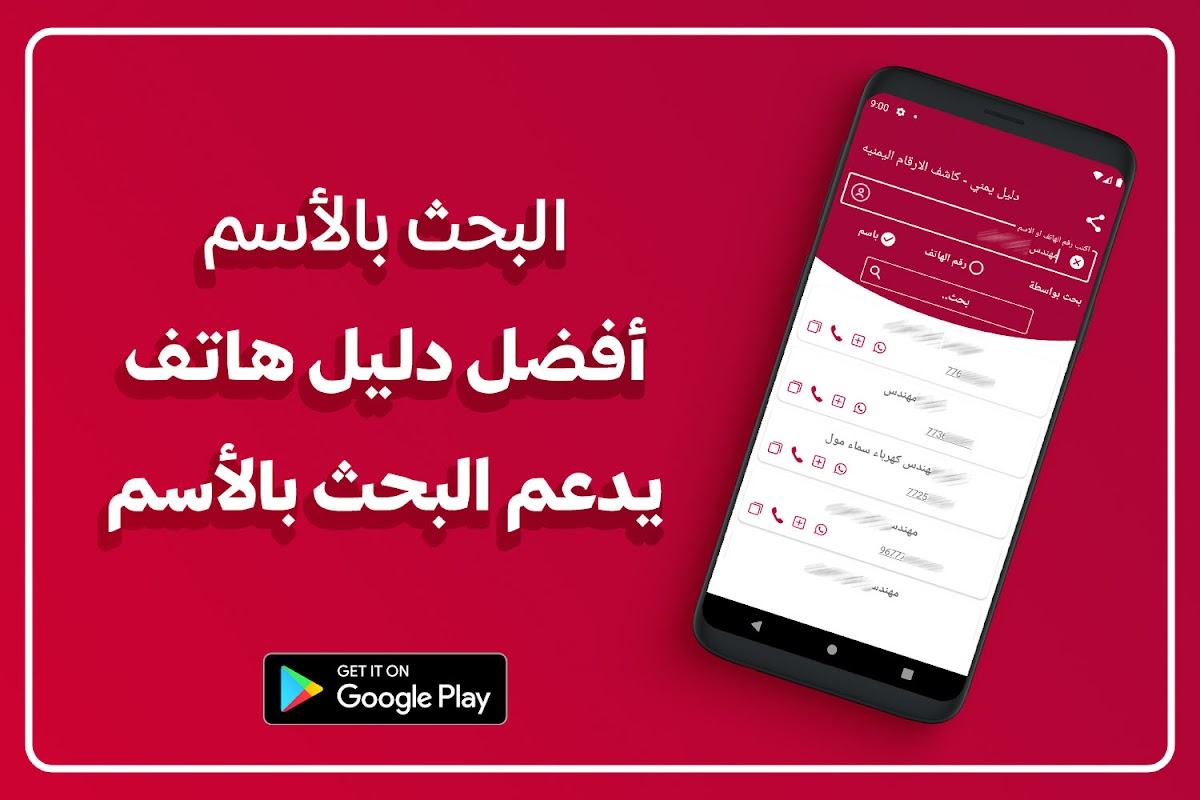 Through the application, you can search for Yemeni mobile numbers, phone numbers, or Yemeni names easily, and it will show you all the registered names for this number, as well as the similar sky, and also the Yemeni numbers detector. For all Yemeni companies: Yemen Mobile, SabaFon, You (You-MTN), Y.