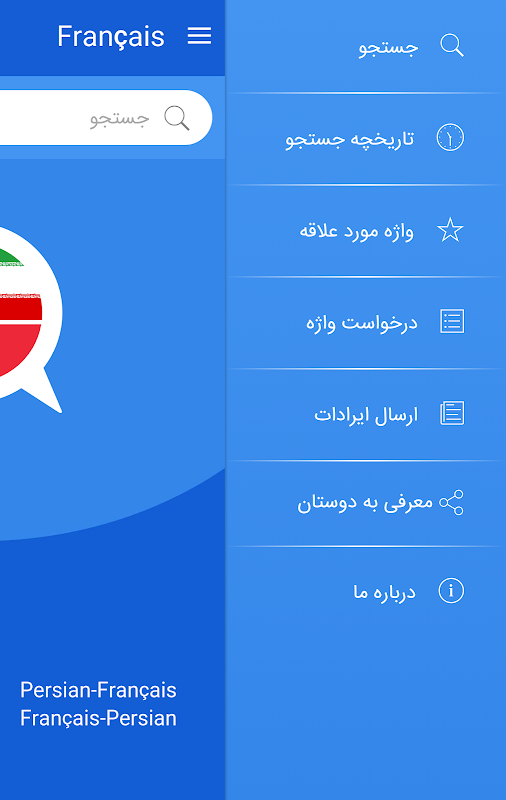 6) Ability to search for words in French to Persian and Farsi to French modes