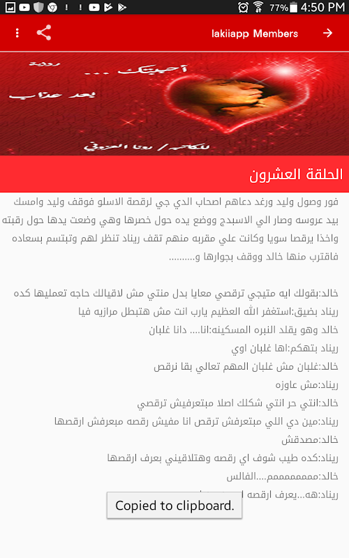 تطبيق قصة احببتك بعد عذاب برعاية لكي اب يعمل بدون انترنت.