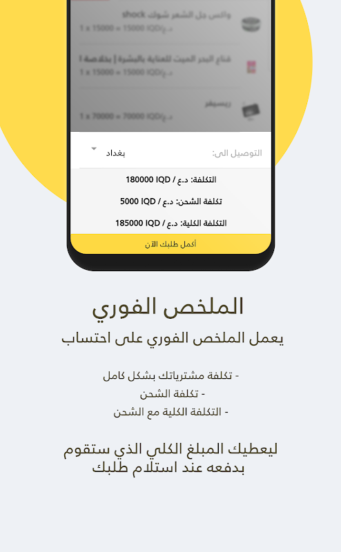 - مشاركة المنتجات مع الاصدقاء والاهل من خلال الواتس اب، فايبر، ايمو، لاين، فيسبوك، ماسنجر