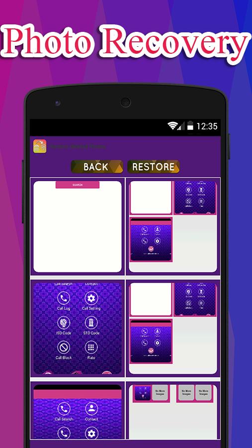 بدون نیاز به روت و کار های نامربوط ریکاوری با یک لمس صد در صد تضمینی و تست شده به همراه ریکاوری عکس های مخفی و نمایش ان نرم افزار قدرتمند ریکاوری عکس های حذف شده حتی خیلی قدیمی عکس های از دست رفته خود را با این نرم افزار باز گردانید - اسکن هوشمند و قوی موبایل برای پیدا کردن عکس های حذف شده - لیست تمامی عکس های اسکن شده - قابلیت انتخاب عکس برای ریکاوری این نرم افزار فوق العاده را از دست ندهید در هنگام نصب نسخه جدید ابتدا نسخه قدیمی را حذف نمایید