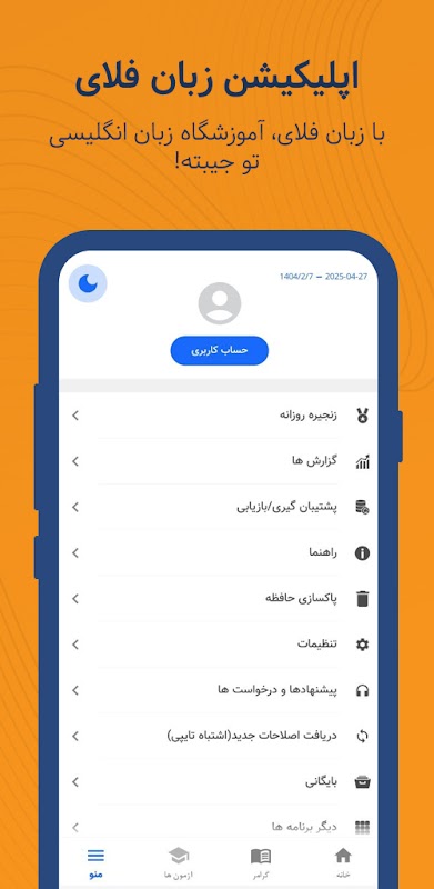 اپلیکیشن رو میتونی به فارسی یا انگلیسی نمایش بدی، هرطور راحتتری.