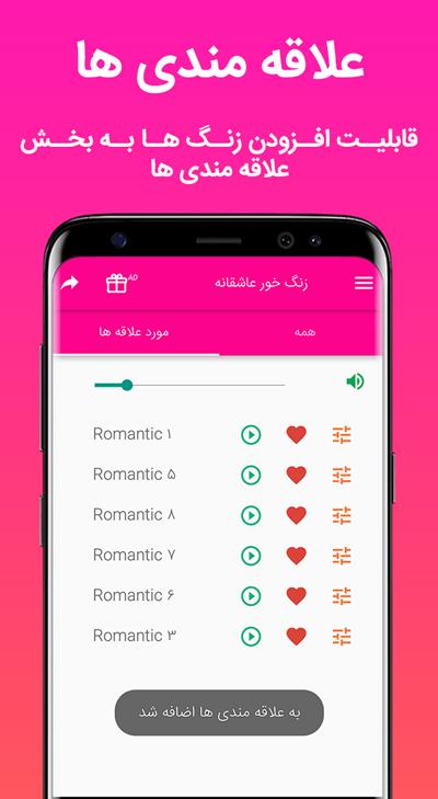 بیش از 50 زنگ خور جدید رمانتیک و عاشقانه برای گوشی اندرویدی شما .زیبا و لوکس با کیفیت صدای عالی. اگر از گشتن دنبال یه آهنگ زنگ خاص، زیبا و سنگین برای گوشیتون خسته شدید پس این اپلیکیشن زنگ خور عاشقانه رو امتحان کنید