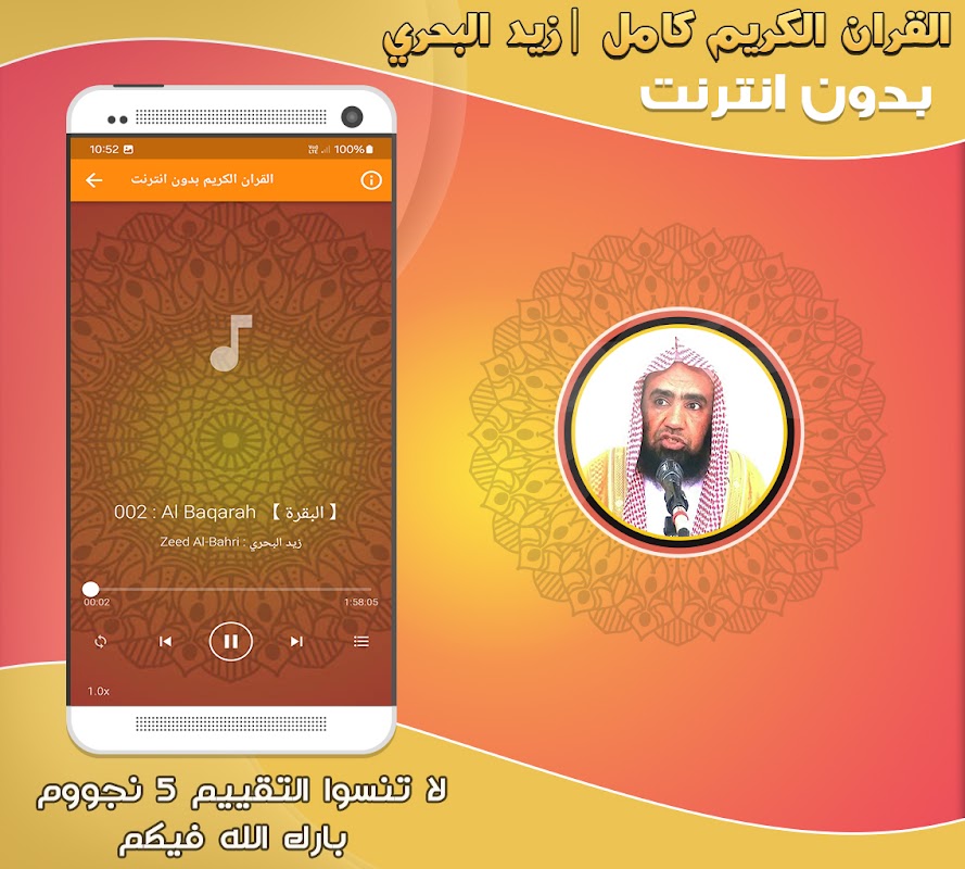 - This application contains the Holy Qur’an in the voice of the reciter Zaid Al-Bahri, a wonderful voice. Enjoy listening to it without the Internet