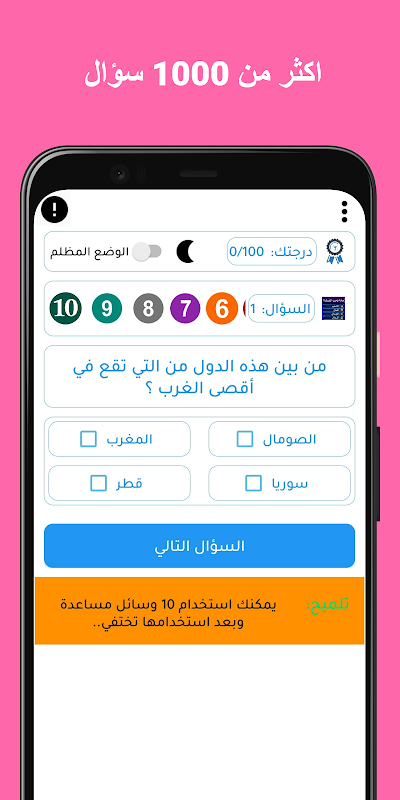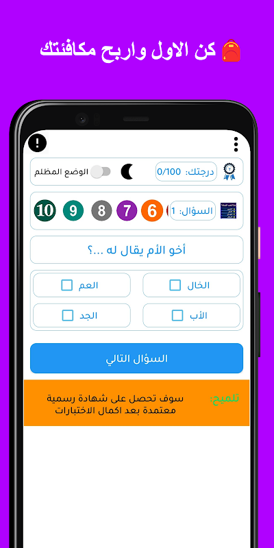 A general culture game, a question and answer in general cultural information. Do you know religious and Islamic? It is a cultural competition game in general culture. It is also a game with a purely Arabic interface and combines entertainment, in addition to acquiring knowledge and culture, all of this in an atmosphere of fun, activity and enjoyment.