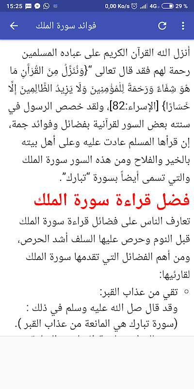 The application of Surat Al-Malik written and audible application is very useful for those wishing to hear the Holy Quran