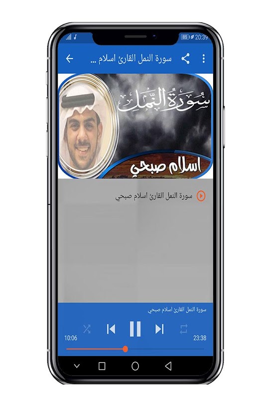 "Surat Al-Naml Islam Sobhi without Net" application contains a humble recitation of Surat Al-Naml with the voice of the young reader Islam Sobhi with a clear and clear voice.