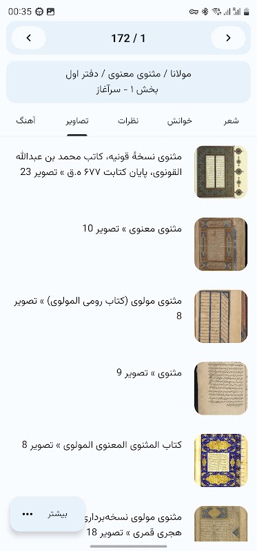 In the history section, the last album or page of the poet that was opened is saved, and there is also a separate history section for each album or page of the poet, and you can easily return to the last section that you viewed before.