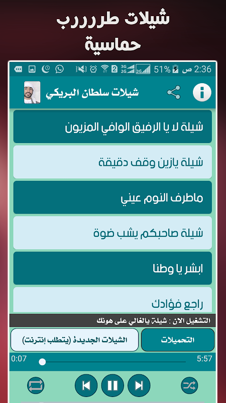 تطبيق شيلات سلطان البريكي يجمع جميع شيلات المبدع سلطان البريكي بدون انترنت