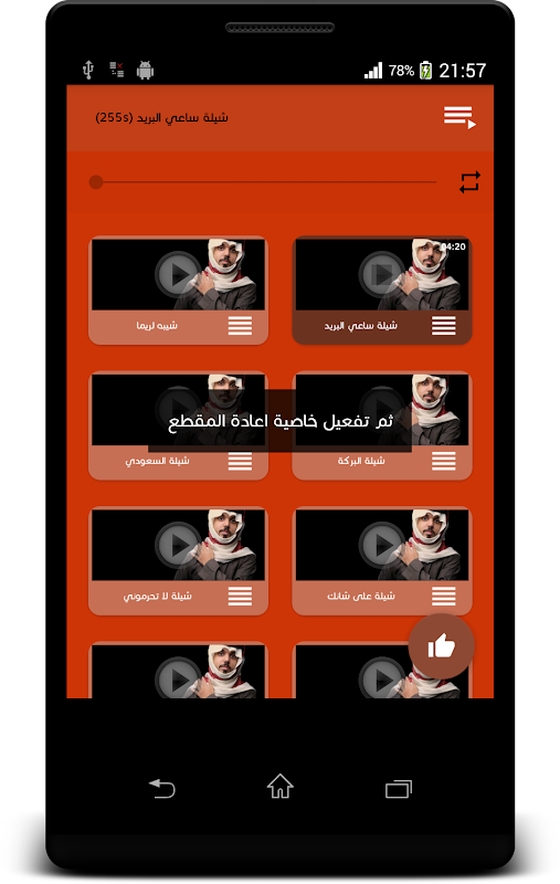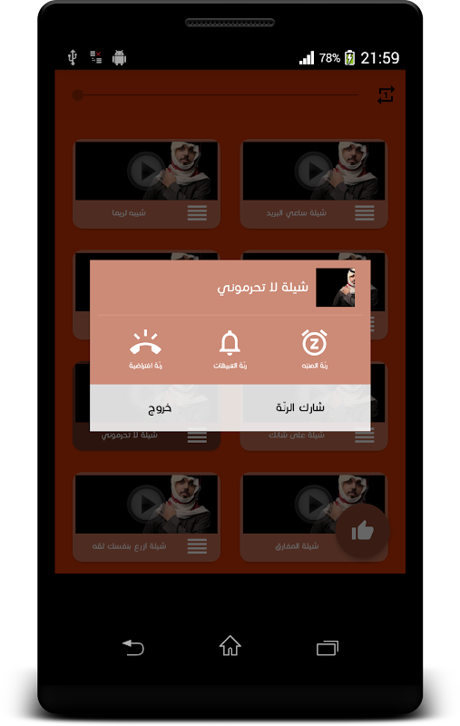 امكانية جعل الانشودة كرنة للموبايل او استعمال الشيله كنغمة للمنبه او غير ذلك