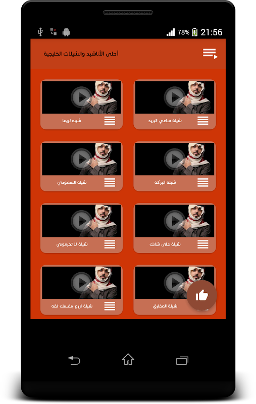 من بين المنشودات المتوفرة في التطبيق نذكر