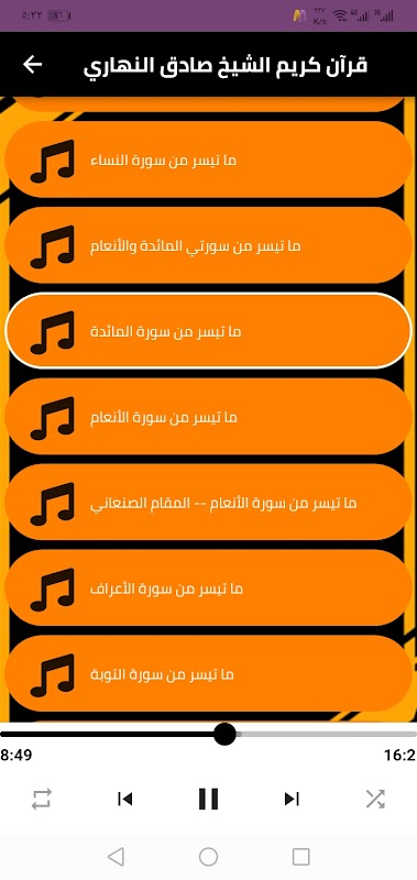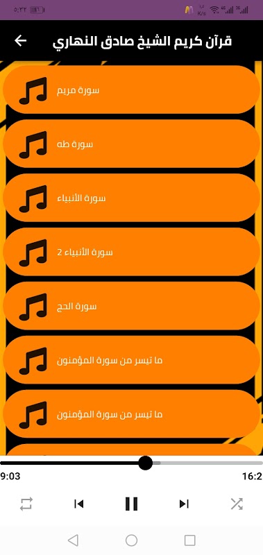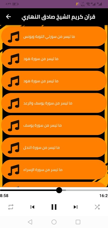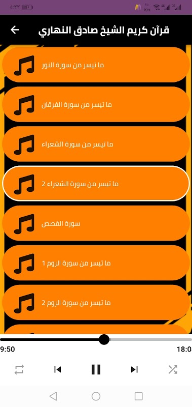 The application of reciting the Noble Qur’an, Sheikh Sadeq Al-Nahari, allows you to hear and download the Noble Qur’an and humbled recitations that shake hearts with the voice of the reader, Sadeq Al-Nahari, and you can download the Holy Qur’an to your mobile phone easily and easily through one application that provides recitation of the Holy Qur’an with the voice of the reader, Sheikh Sadeq Al-Nahari, quiet recitations that reassure your heart