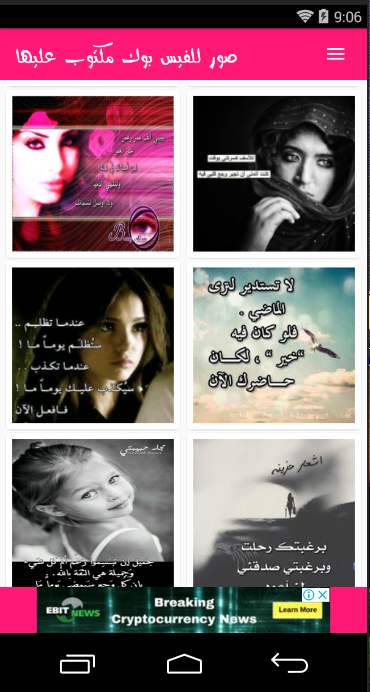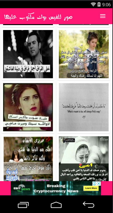 يحتوي تطبيق صور وحالات فيس بوك مكتوب عليها على مجموعة كبيرة من الصور الرائعة التي يمكنكم استخدامها للفيس والواتس وكافة وسائل التواصل الاجتماعي، كما يتضمن تطبيق صور فيس بوك مكتوب عليها على صور معبرة ومؤثرة وجع والام وحزن يمكن وضعها الهذه الحالات المذكورة،وهذه الصور الموجودة في تطبيق صور فيس بوك مكتوب عليها صممت خصيصا لاستخدامها على مواقع التواصل الاجتماعي كالفيس بوك والواتس اب والماسنجر وتويتر ،حيث بإمكانكم إستخدام هذه الصور المعبرة على صفحاتكم الشخصية على الفيسبوك أو على المجموعات المنشأة على الفيسبوك للتعبير عن الحالة التي تحسون بها في هذه الاثناء من خلال اختيار الصورة المناسبة للحالة التي تمرون بها .