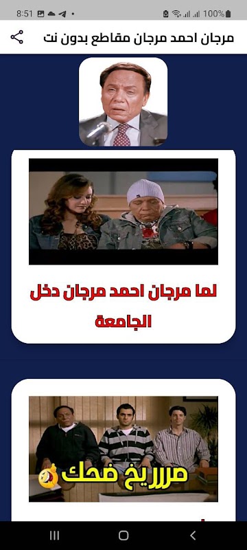 The application of Adel Imam clips from the movie Morgan Ahmed Morgan without the need for the Internet