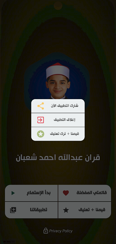 The Quran application recited by Abdullah Ahmed Shaaban without the Internet is an application that contains the most beautiful recitations of the young boy reciter Abdullah Ahmed Shaaban without the Internet, and with a calm, sweet, and melodious voice that captivates us into a world of purity, sincerity, and cleanliness, purifying us and elevating our souls so that we may soar in the sky of mercy and forgiveness.