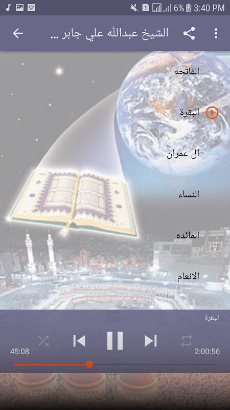 بعدها يمكنك الاستمتاع بتجربة فريدة مع الشيخ عبدالله علي جابر في تلاوة القرآن mp3.