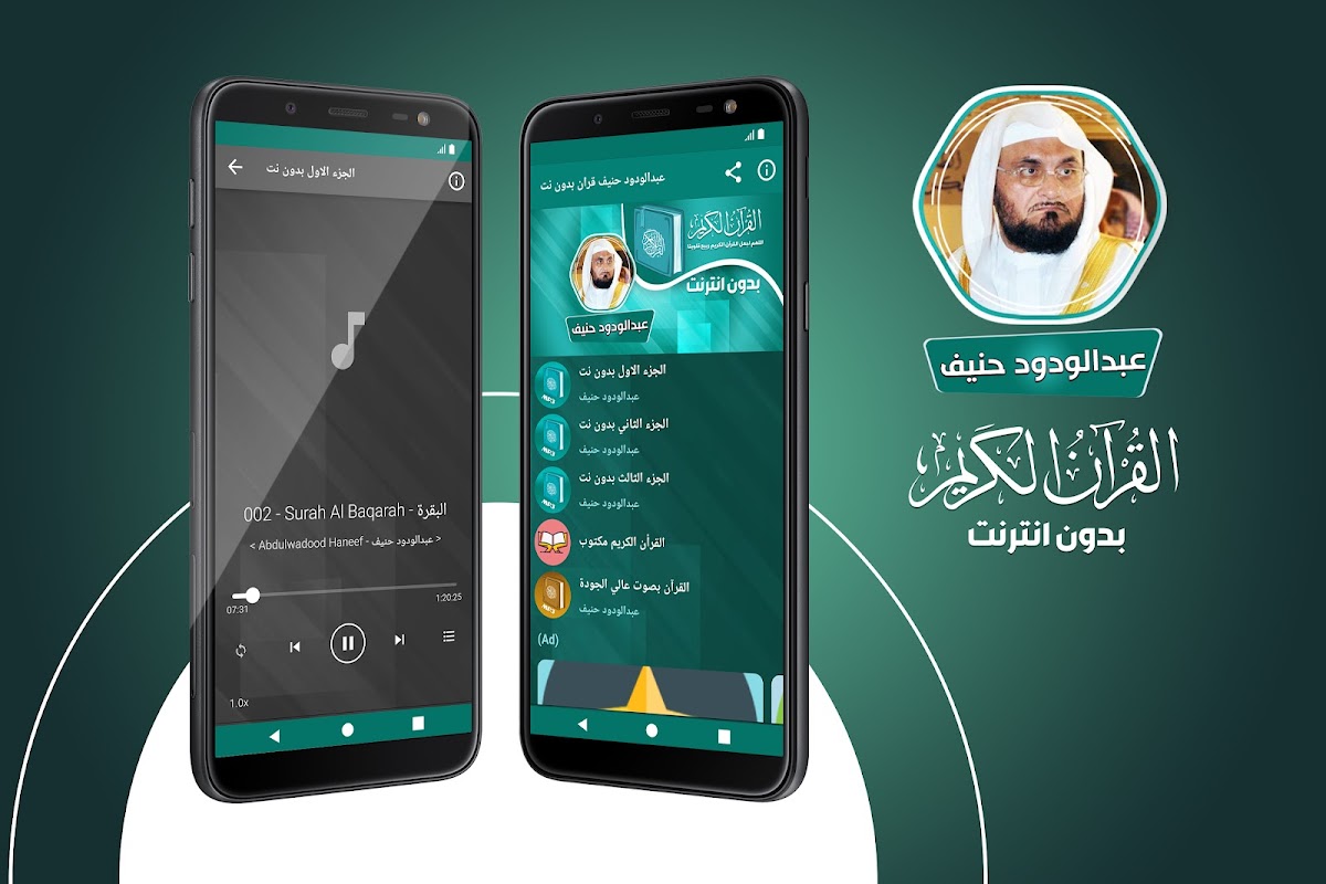 🔹 The application of the Noble Qur’an contains the voice of the reciter Abd al-Wadud Hanif, listening to the surahs of the Qur’an without the Internet, and this application is characterized by free recitation of the Qur’an