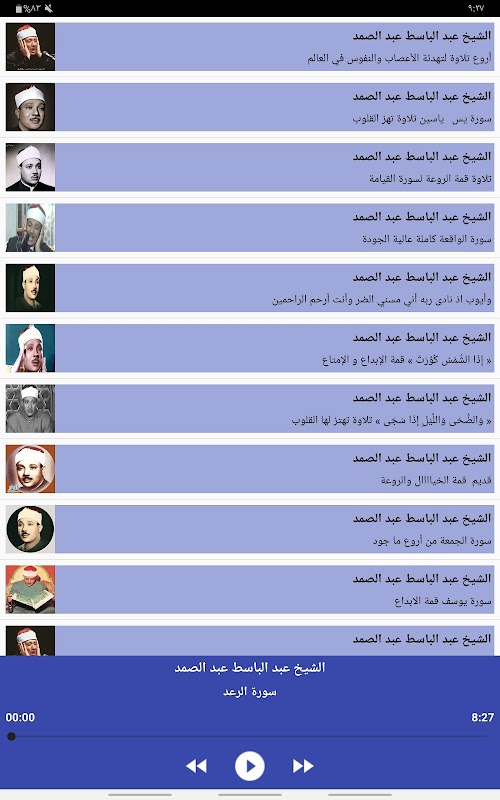 The Abdul Basit Abdul Samad application of the Holy Qur’an completely without the net allows you to hear all the surahs of the Holy Qur’an through your mobile phone or tablet device with ease through one program that contains several surahs from the Holy Qur’an. It is free and available on the store for Android phones. The Holy Quran application can be downloaded with the voice of Abdul Basit Abdul Samad with ease, so that you can enjoy the recitation of the Holy Quran in the voice of Sheikh Abdul Basit Abdul Samad wherever you want.