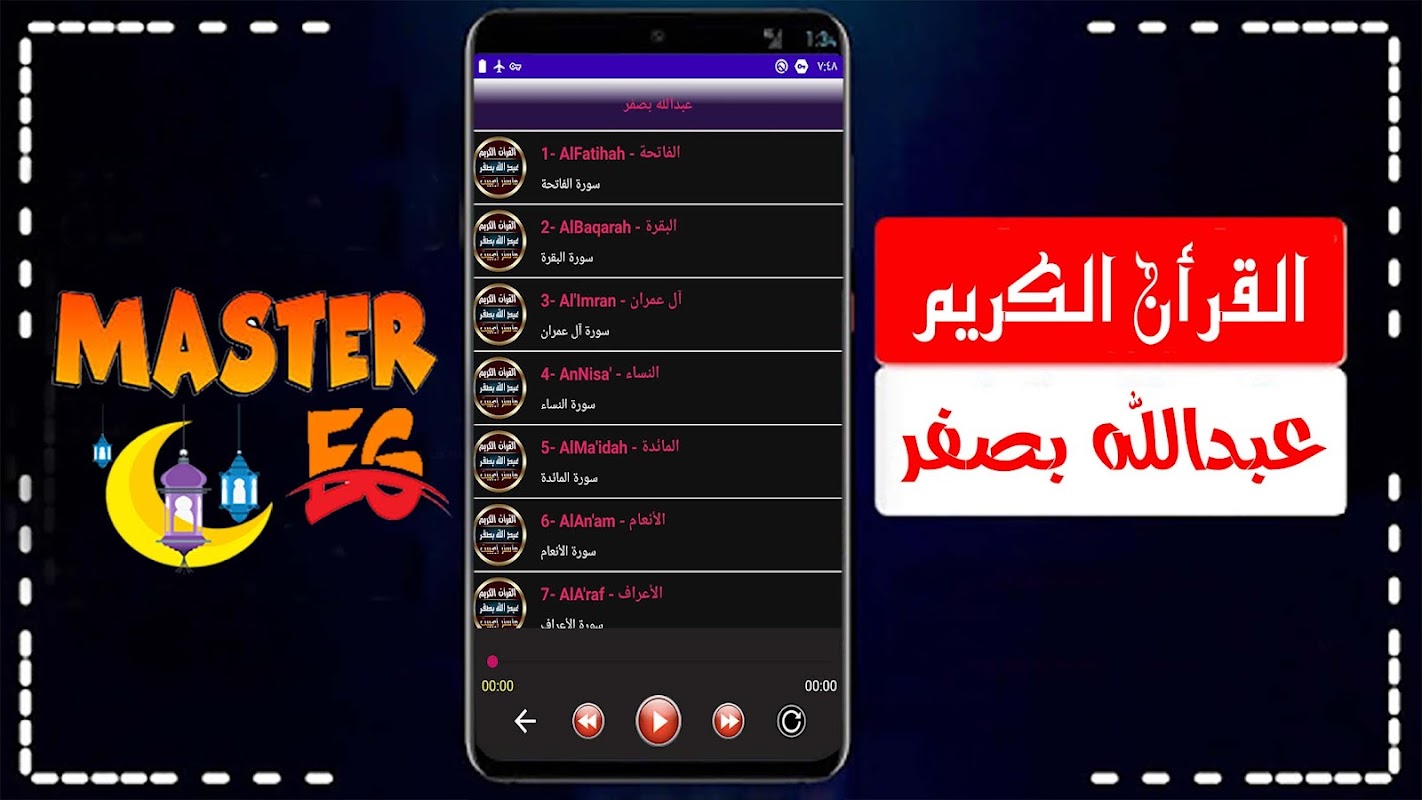 The Abdullah Basfar without Net Quran mp3 program was designed to be easy to use with a simple interface