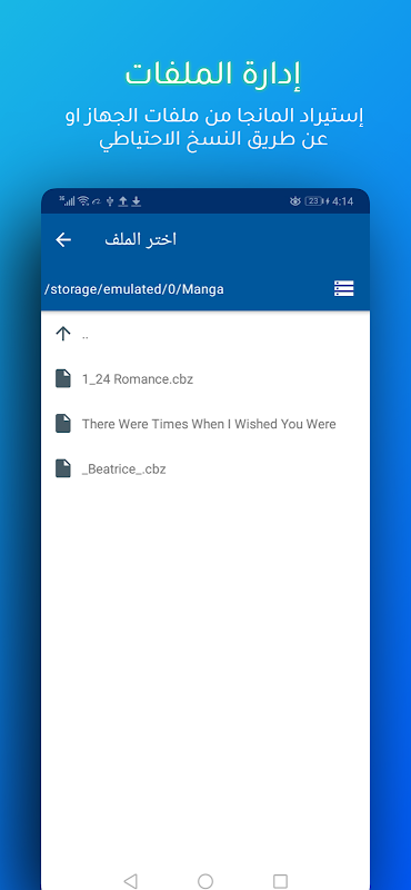 - إستيراد مجلدات المانجا من الجهاز لقراءتها على التطبيق