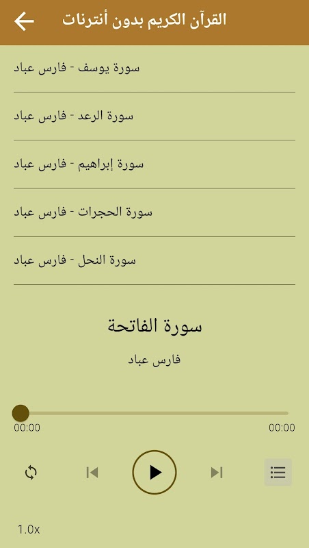 The application provides pure and clear audio that reflects the true beauty of Sheikh Fares Abbad’s recitation