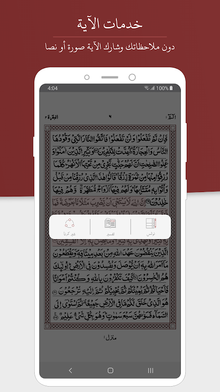 Listen to the verses of the Koran through the Internet without downloading, linking the recitation with the verses of the Koran verse verse to facilitate follow-up, with the possibility of defining a specific range of recitation.