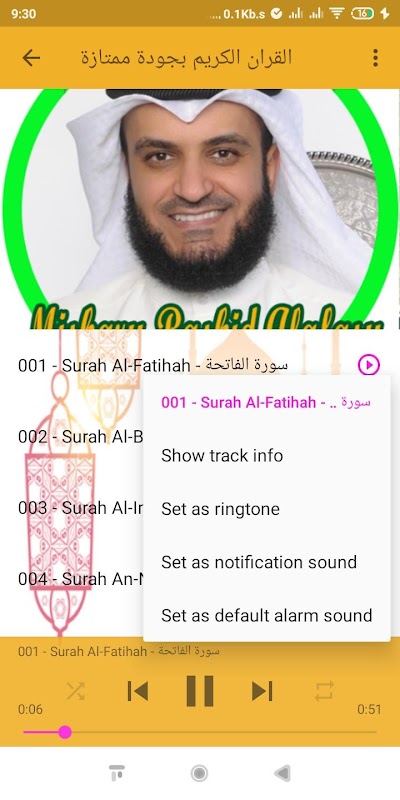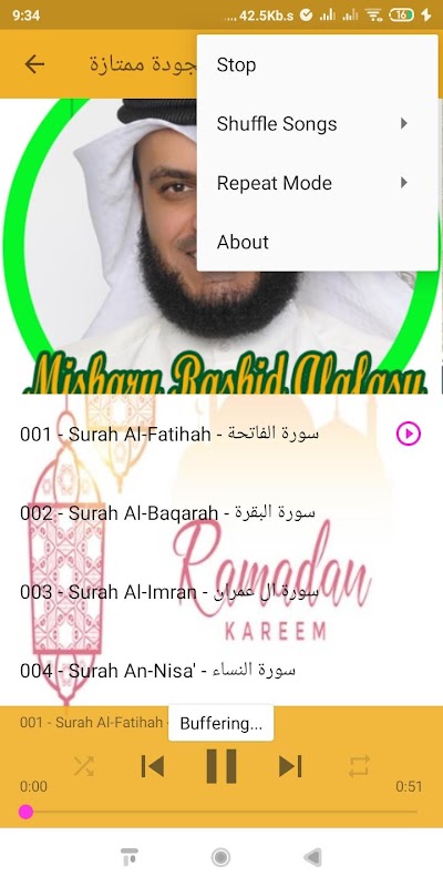 This application contains Quran Mp3 with Complete Misyari Rasyid Sounds Without Internet