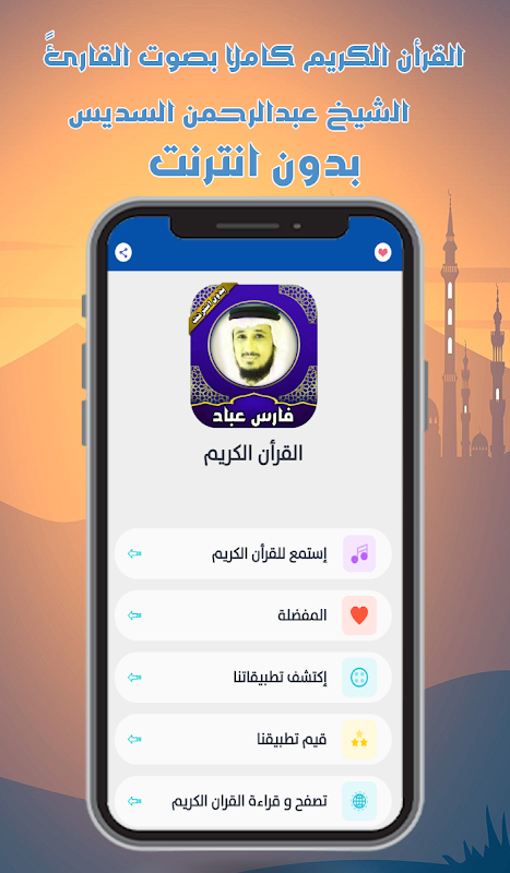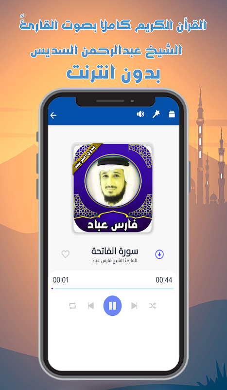 The application of the entire Qur’an Fares Abbad without the net enables you to hear the entire Holy Qur’an through a mobile phone or tablet with ease and ease through one application that contains all the surahs of the Noble Qur’an, and the application of the entire Qur’an with the voice of Sheikh Fares Abbad also enables you to browse and read the Holy Qur’an And listening to it at the same time is free and is also available on the store for Android phones. In order to enjoy reciting the Noble Qur’an with the voice of Sheikh Fares Abbad wherever you want.