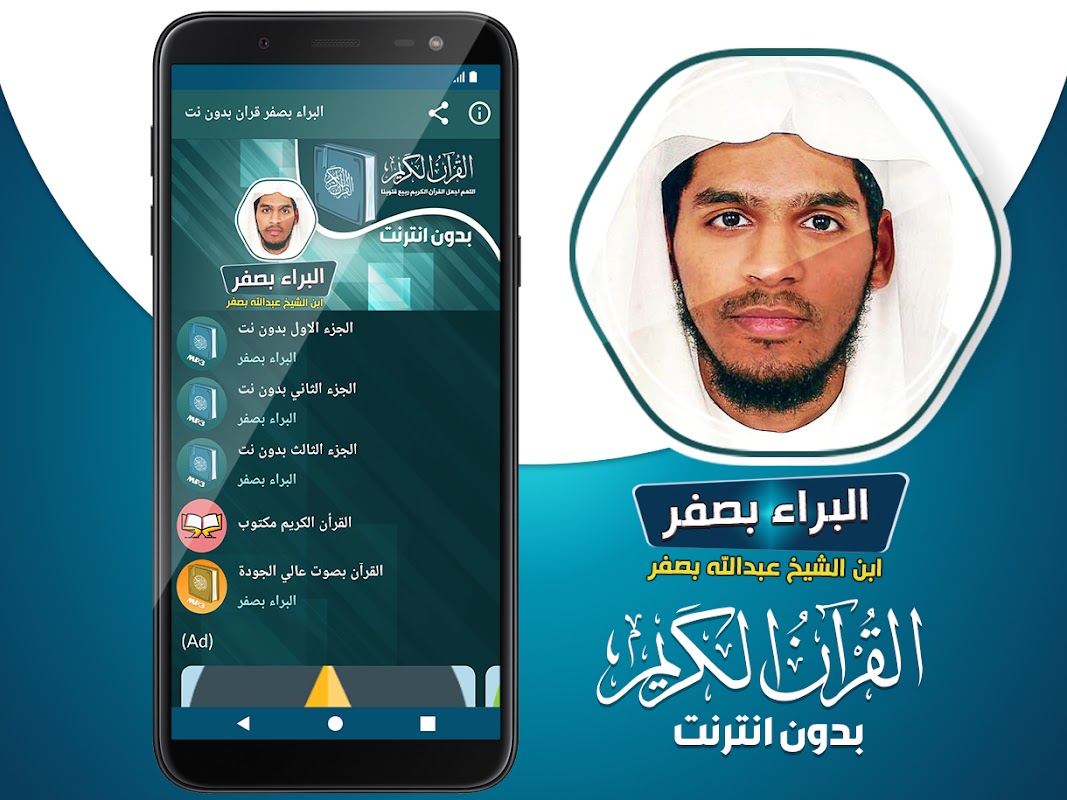 🔹 The Holy Quran application contains the voice of the reciter Al-Baraa bin Abdullah Basfar, listening to the surahs of the Qur’an without internet and it is characterized by this application for free recitation of the Qur’an.