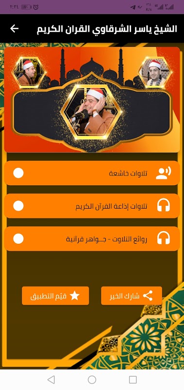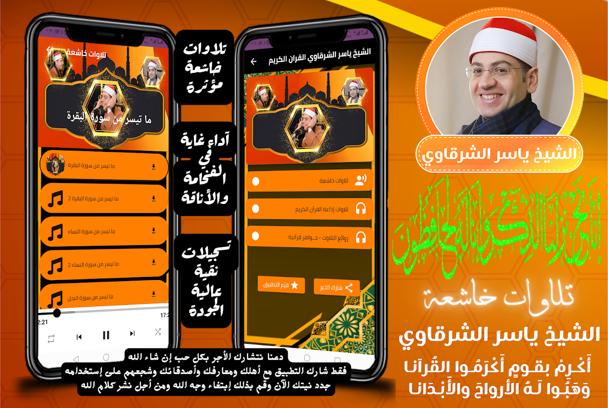 The application of the Qur’an, Sheikh Yasser Al-Sharqawi, allows you to hear and download the Noble Qur’an with the voice of the reader, Yasser Al-Sharqawi, and you can download the Noble Qur’an to your mobile phone easily and conveniently through one application that includes the most beautiful humbled recitations from the Holy Quran mp3 with the voice of Sheikh Yasser Al-Sharqawi