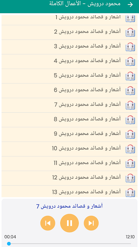 Enjoy all the poems and poetry of the great Palestinian poet Mahmoud Darwish in one application, written in full and offline, in addition to a collection of high-quality audio poems online.