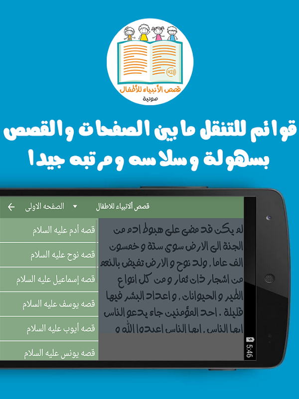 قصص النبياء للاطفال تطبيق عربى فريد من نوعة يقدم للاطفال قصص الانبياء بصوت و صور شيقة للتعلم والتسلية وفهم قصص الانبياء القيمة بطريقة سهلة ،سلسة وشيقة للاطفال.
