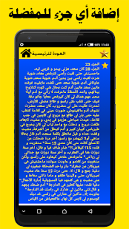 - خاصية وضع أي جزء في المفضلة لتكمل منه القراءة في أي وقت