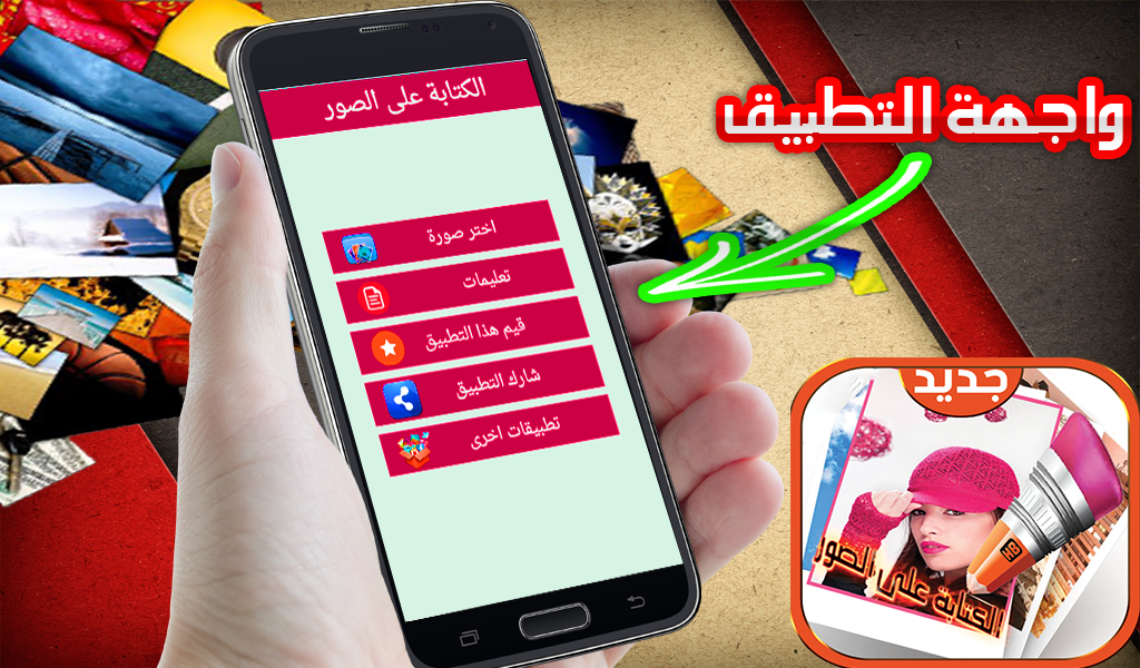 التطبيق الأول عربيا في الكتابة على الصور و زخرفتها واضافة مؤثرات وتلويا الصور ومشاركة الصور في المواقع الاجتماعية والمزيد ...
