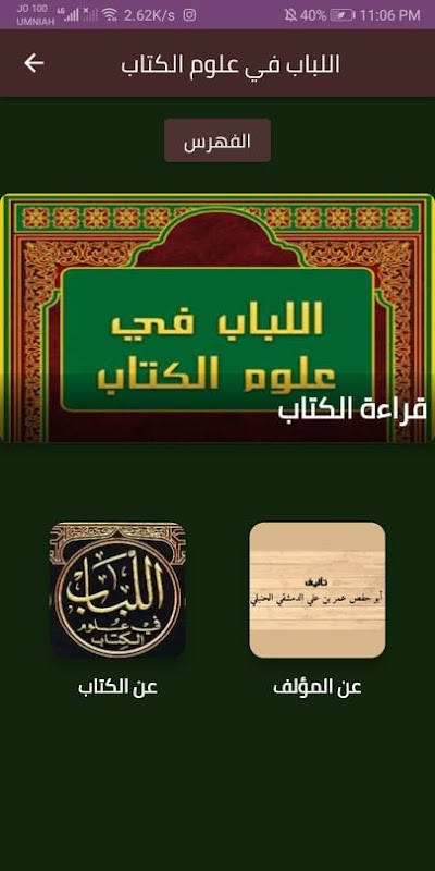 The application of the Book of the Pulp in the Sciences of the Book is an application that displays the entire Book of the Pulp in the Sciences of the Book, which is concerned with the interpretation of the entire Holy Qur’an by its author Omar Reda Kahala. The parts of the Holy Qur'an