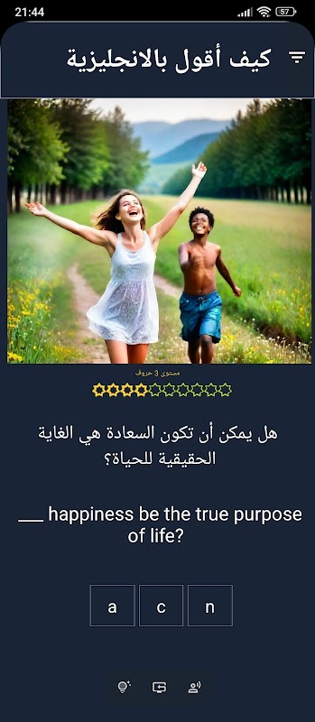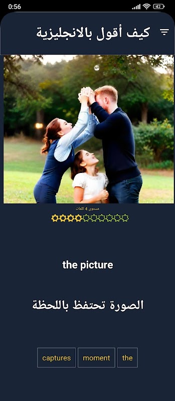 The “How to Say in English” application is an innovative application that relies on artificial intelligence techniques to produce high-quality texts and images in the English language. This application features an effective, play-based pedagogy to enhance the learning process, in addition to providing multiple levels that allow users to gradually improve their skills.