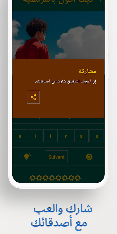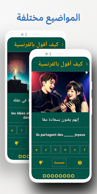 The application "How to say in French" is an innovative application that relies on artificial intelligence techniques to produce high quality text and images in the French language. This app features effective play-based pedagogy to enhance the learning process, in addition to providing multiple levels that allow users to improve their skills progressively.