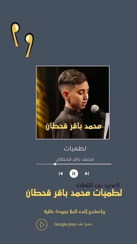 Conclusion: The application of the songs of Muhammad Baqir Qahtan is an application that includes a variety of enthusiastic songs and more, and Husseini songs with the participation of Rawadid, the poem of Alam Jan, and many more.....