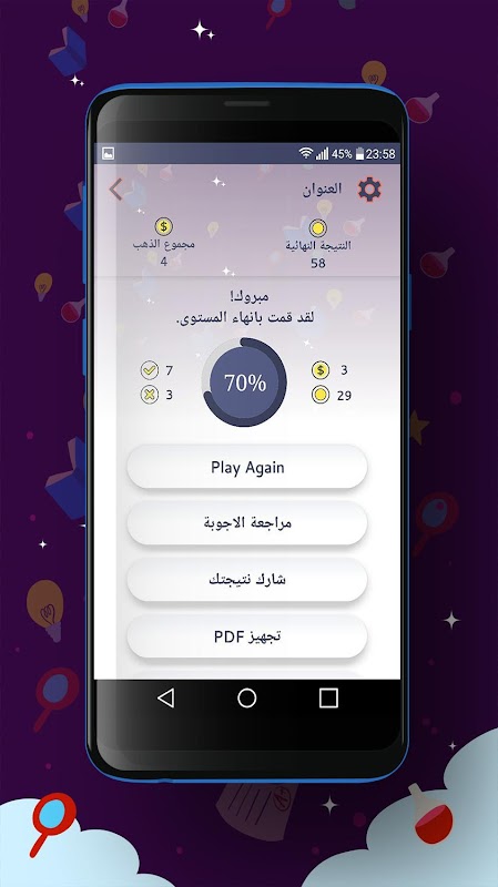فمثلاً لكل إجابة صحيحة تحصل على 5 ذهبات , ومقابل كل إجابة خاطئة تخسر نقطتان