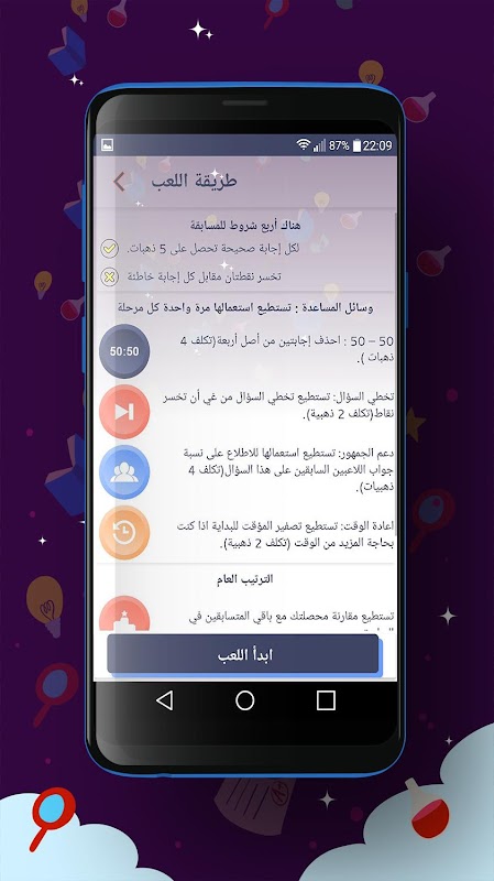 من مميزات برنامج المسابقة هذا بأنه يحتوي على قوانين ووسائل مساعدة تُشجعك على خوض التحدي